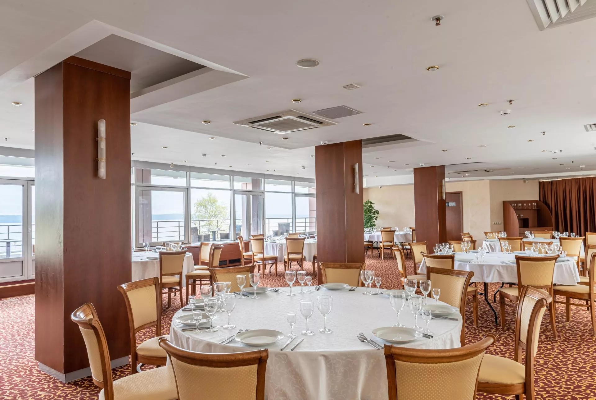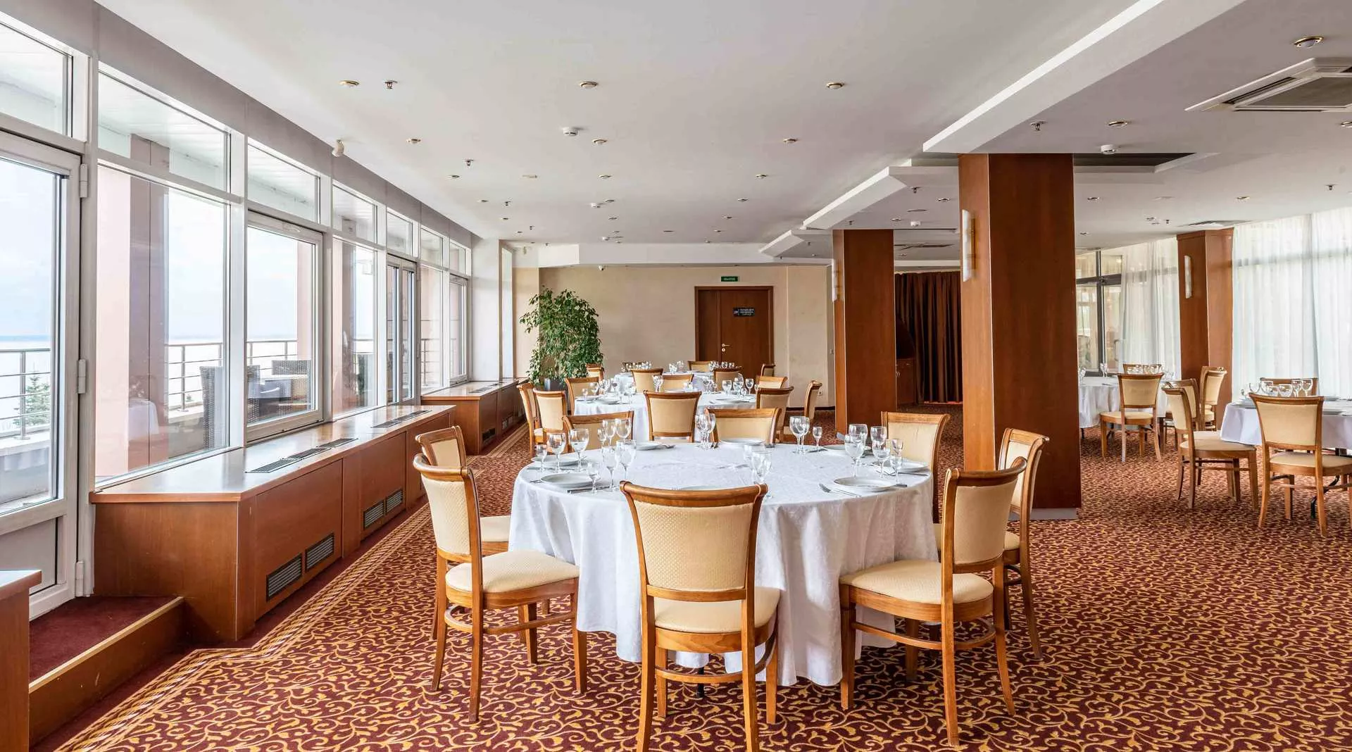 Зал «Бульвар» с видом на Онежское озеро расположен на 2-ом этаже отеля. Подходит для проведения семейных торжеств, свадеб или корпоративных фуршетов. В тёплое время года открыт выход на балкон.